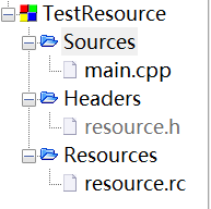 用位图资源作为例子,新建一个空项目,在项目下新建一个资源文件,resource.rc,一个cpp文件main.cpp,一个头文件resource.h