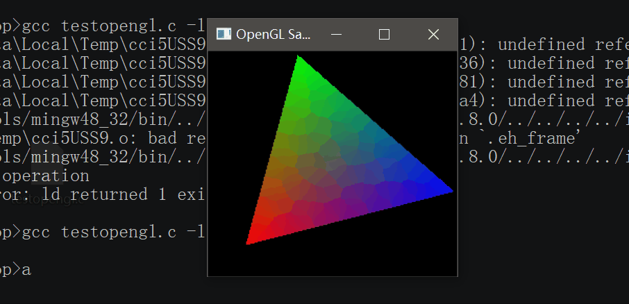 gcc TestOpengl.c -lopengl32 -lglu32 -gdi32 -o a.exe