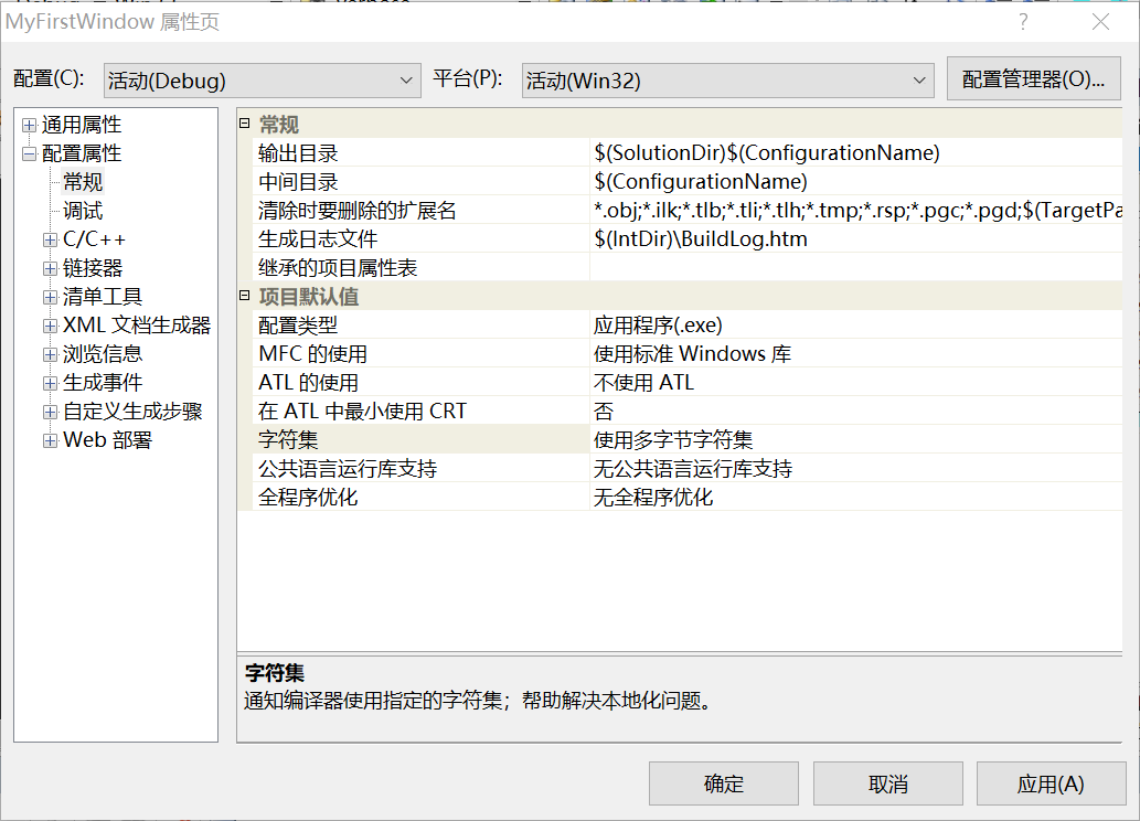 项目,属性,配置属性,常规,字符集,选择多字节字符集