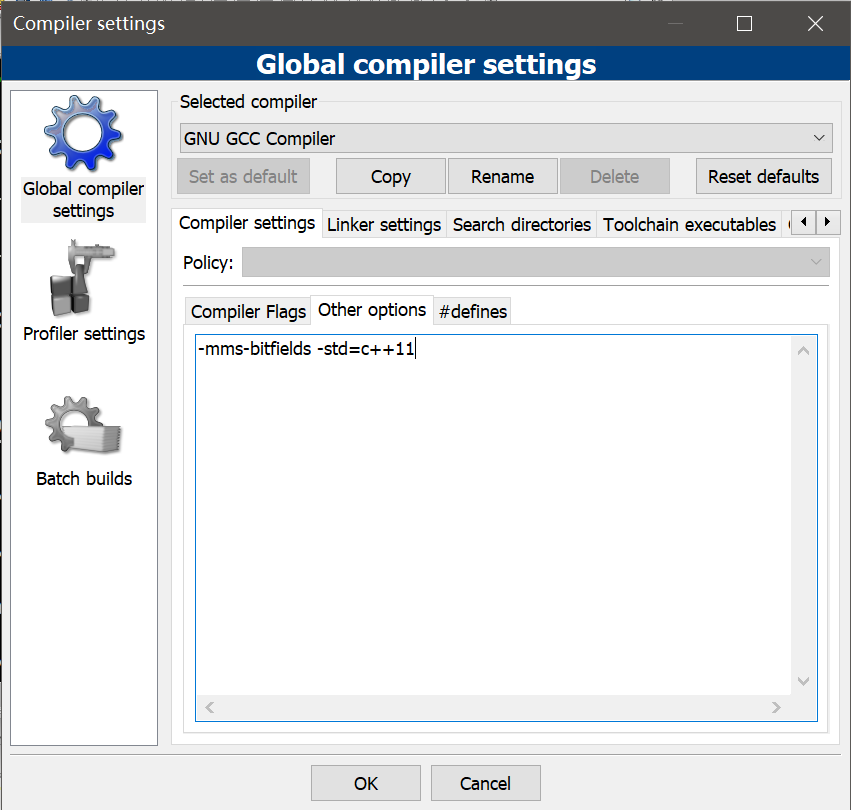 - compiler settings,other options,编译器设置编译时参数,加入