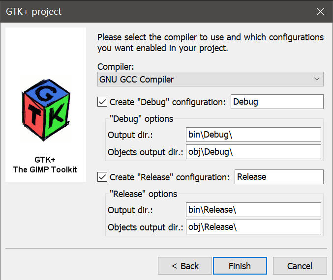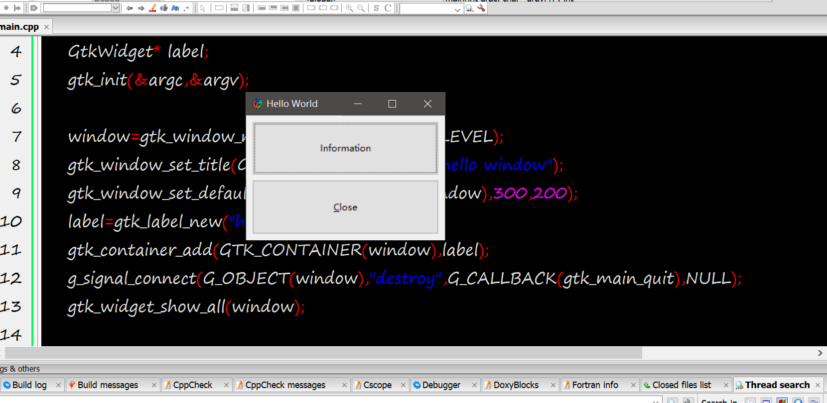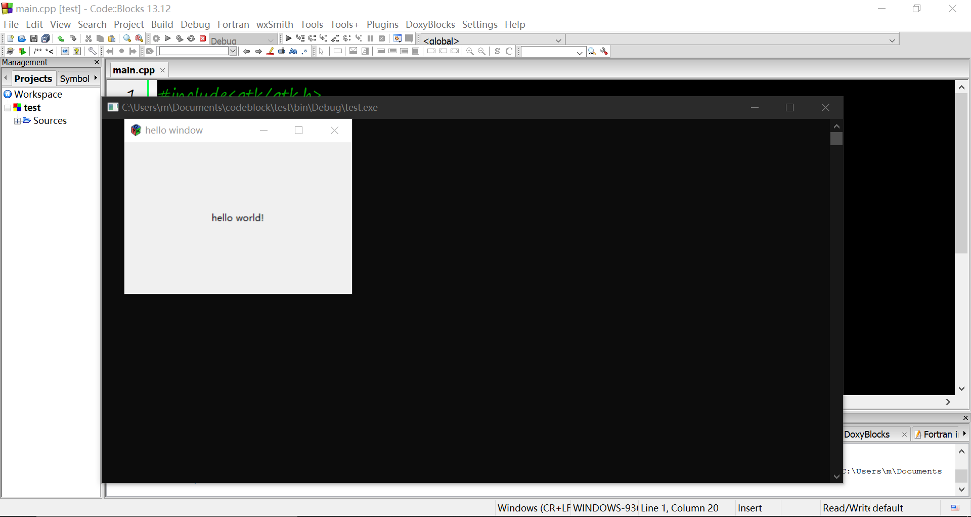 由于codeblock自身支持gtk项目,因此可以不必像之前麻烦的配置编译链接参数。