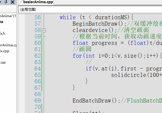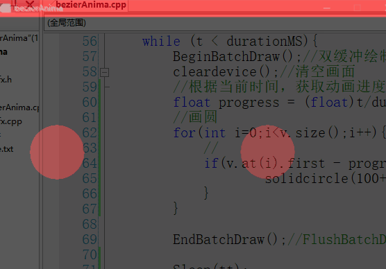 solidcircle(100+v.at(i).second*300,200,40);//x起始点100,运动范围0-300,y点200,半径40的圆