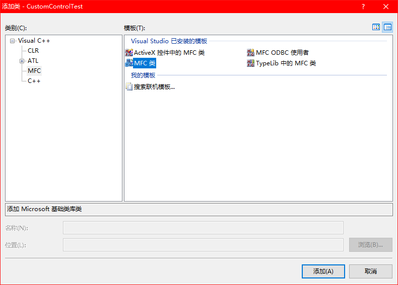 我们需要为自定义控件添加一个类。项目,添加类,MFC类