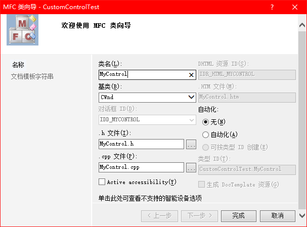 用VS2005新建一个MFC项目,添加一个Custom Control控件在窗体