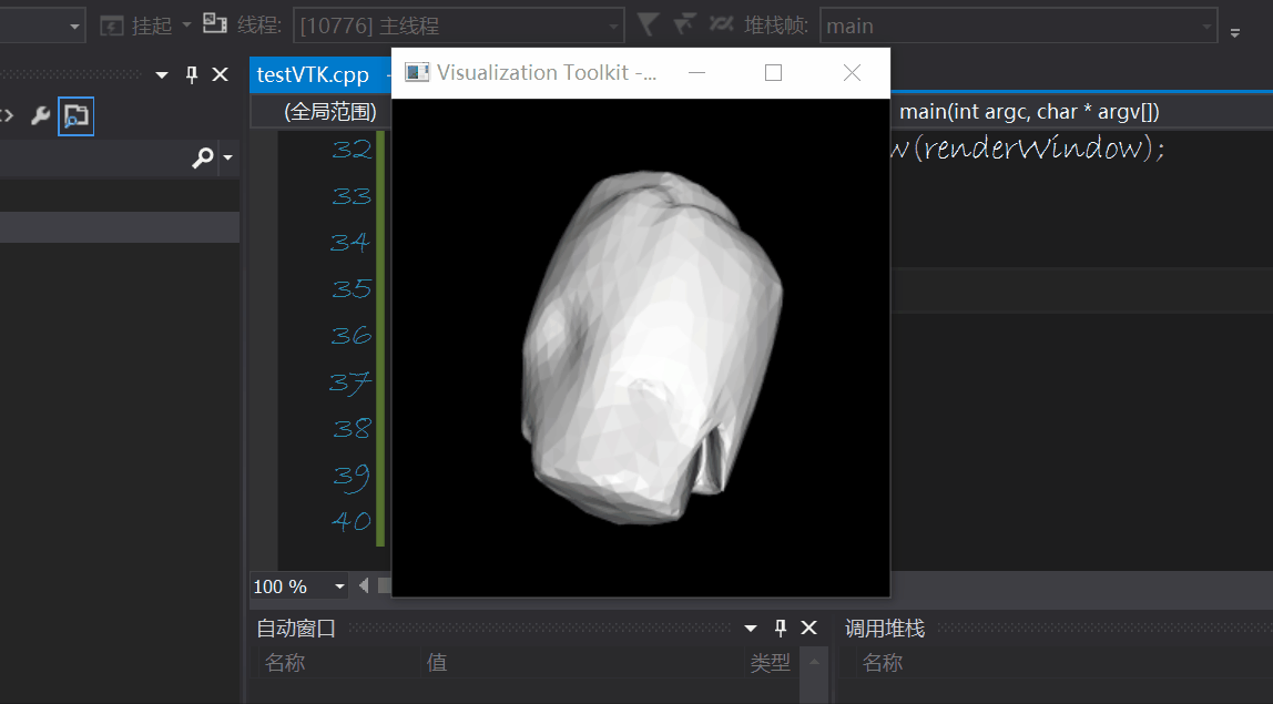 VTK_MODULE_INIT(vtkRenderingOpenGL2); // 和你cmake时候选的opengl相匹配,如果是opengl那就是vtkRenderingOpenGL,而我选的是opengl2,所以这里的参数是vtkRenderingOpenGL2
