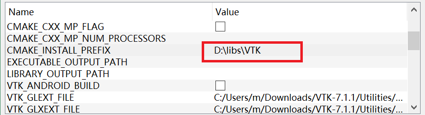 configure完成后,CMAKE_INSTALL_PREFIX填入指定的安装目录