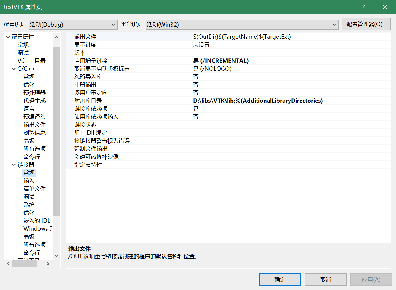 设置附加依赖项,可以在库目录下使用cmd命令生成