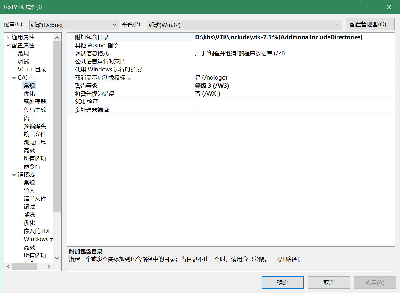 点击项目,属性,设置附加包含目录,是你的VTK安装路径的include文件夹/VTK版本