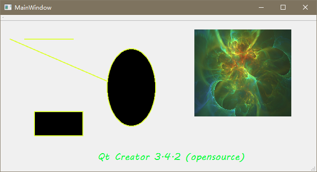 painter.drawText(200, 300, "Qt Creator 3.4.2 (opensource)");//文本内容