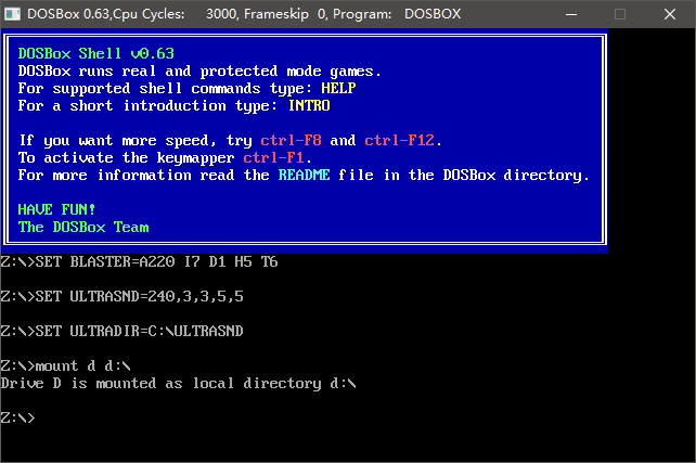 安装dos模拟器,启动dos模拟器,我的TC安装在D:\BuildTools\TurboC2目录下,挂载D盘目录盘符D