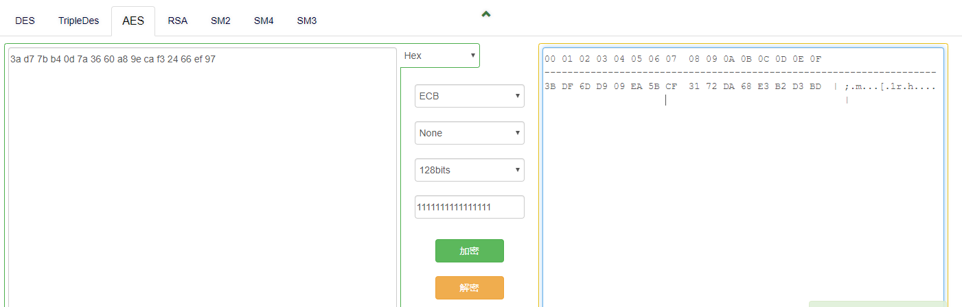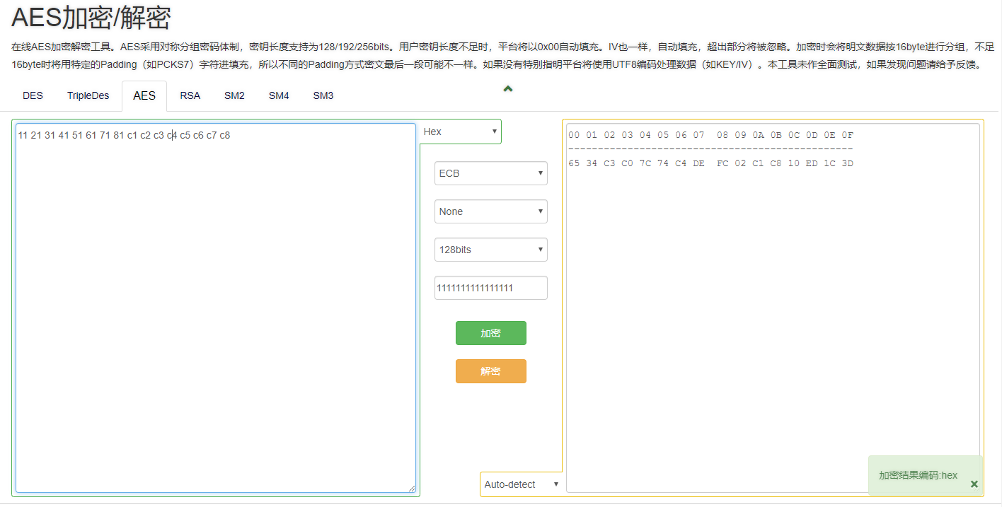 密钥是0x31, 0x31, 0x31, 0x31, 0x31, 0x31, 0x31, 0x31, 0x31, 0x31, 0x31, 0x31, 0x31, 0x31, 0x31, 0x31,实际上就是ascii的"1111111111111111"