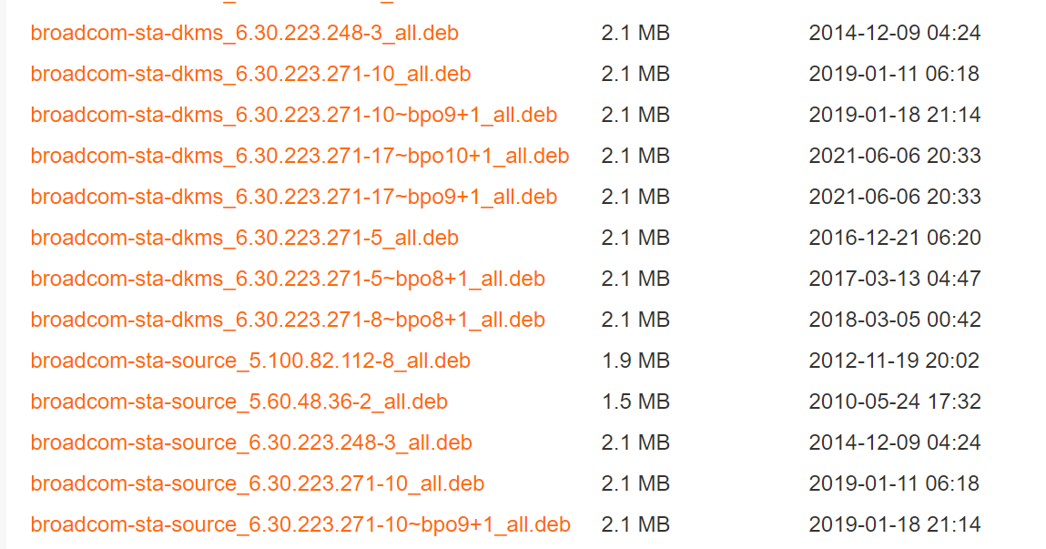 然而等我使用debian9的时候竟然因为gcc编译器版本太高,无法编译网卡驱动!我到https://mirrors.aliyun.com/debian-archive/debian/pool/non-free/b/broadcom-sta/