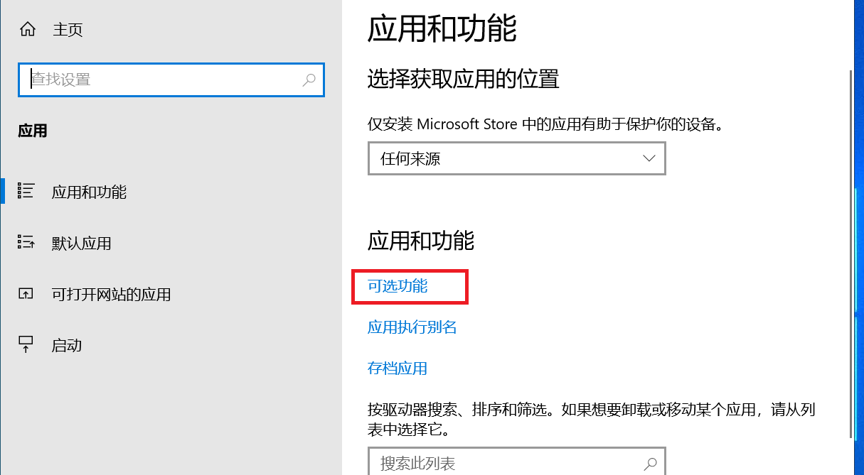 点击设置,应用,可选功能