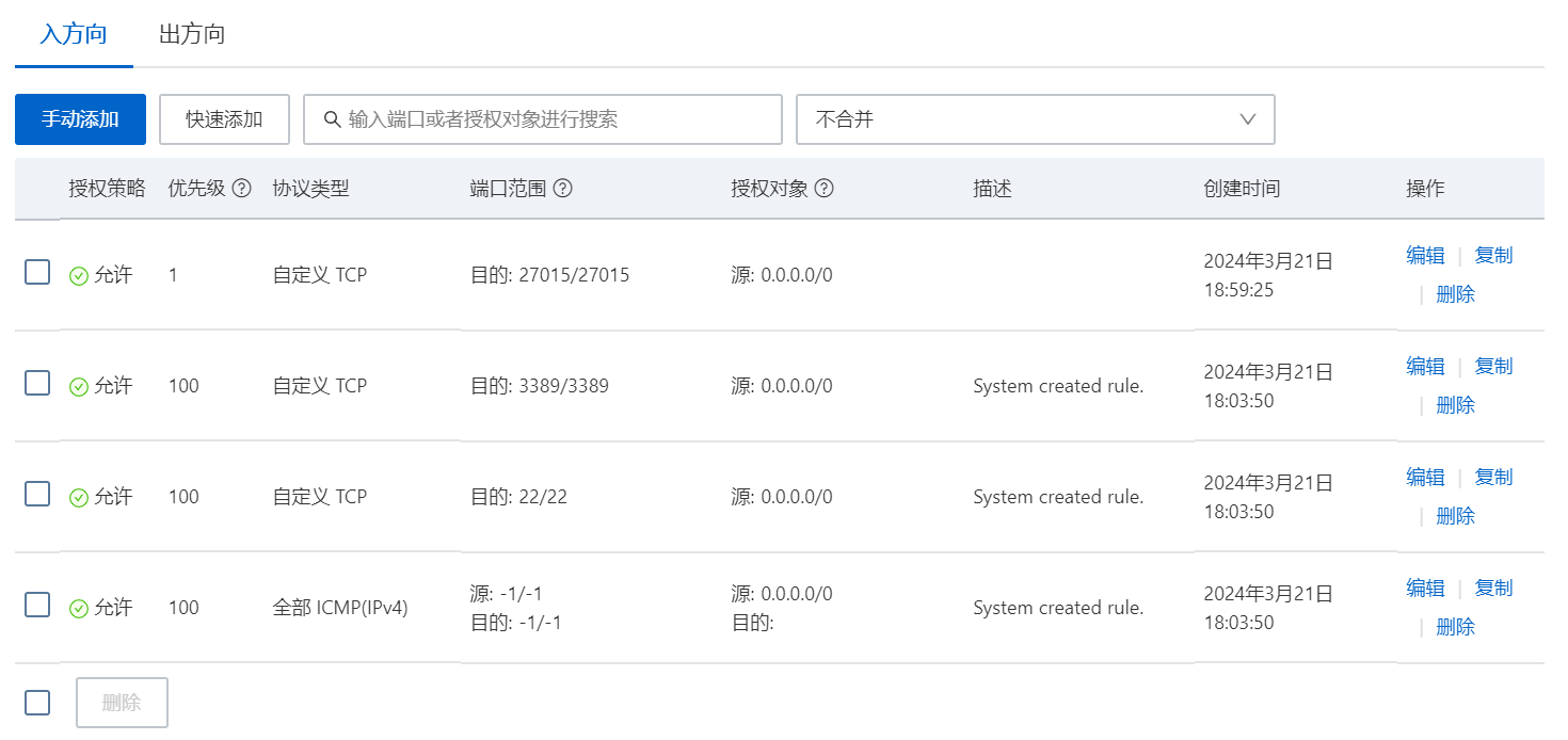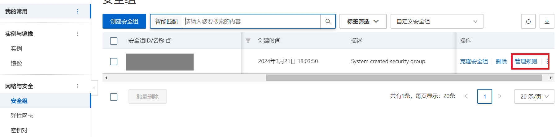 点击安全组,管理规则