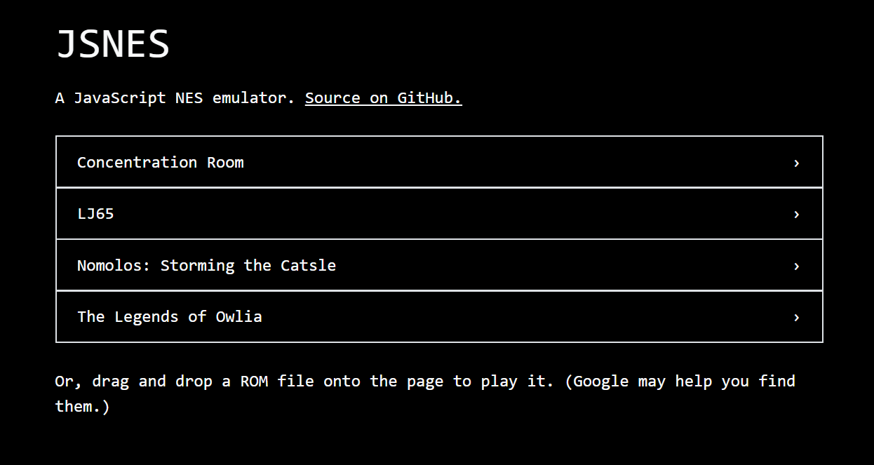 <script type="text/javascript" src="https://unpkg.com/jsnes/dist/jsnes.min.js"></script>