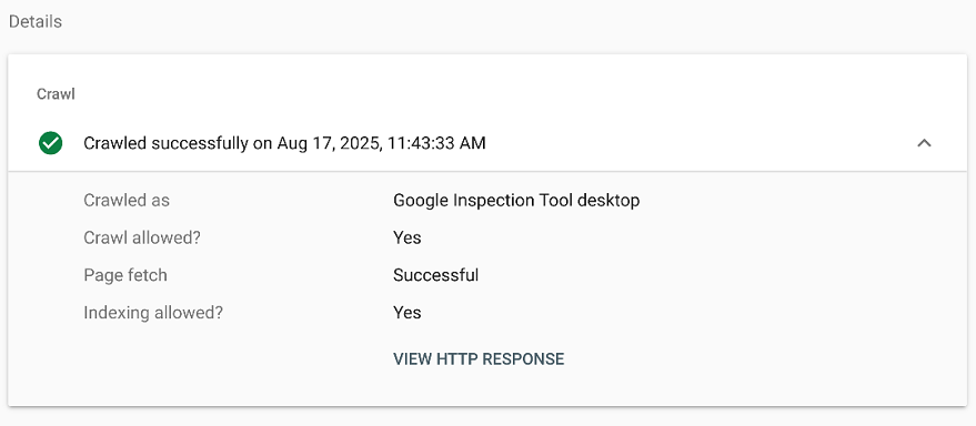 最后,还可以在详情页面查看抓取的页面截图,如果截图显示的是正常的内容,就说明google的爬虫可以正常渲染和抓取网页的页面内容。