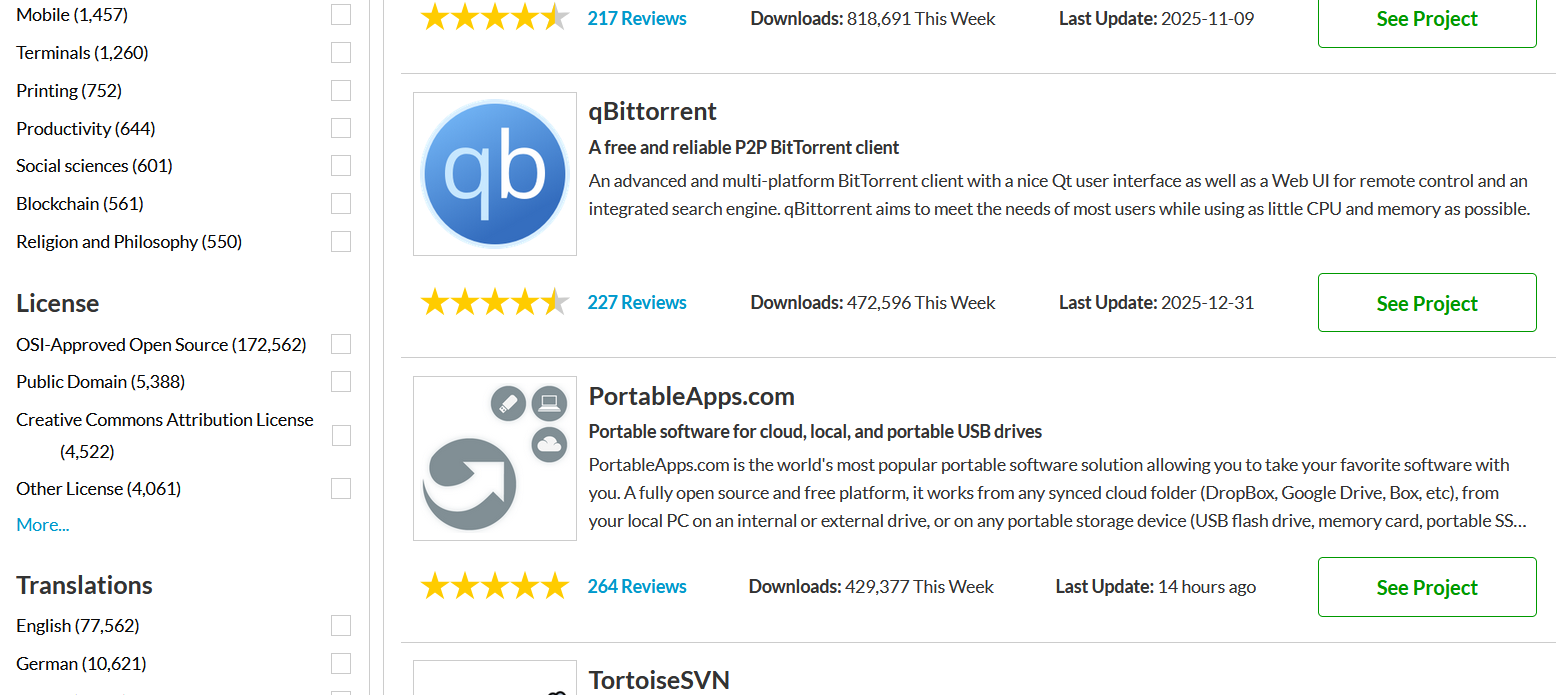 SourceForge 成立于1999年,是 早期互联网开源运动的奠基性平台。在 Git 和现代协作工具普及之前,它通过提供集中的 项目托管、版本控制(早期以CVS/SVN为主)、文件下载、问题追踪和论坛 等一体化服务,极大地降低了开源项目的启动和管理门槛。鼎盛时期,它托管了海量经典项目(如 GIMP、VLC、FileZilla),是开发者寻找和下载开源软件的 首选仓库,被誉为“开源软件的灯塔”。